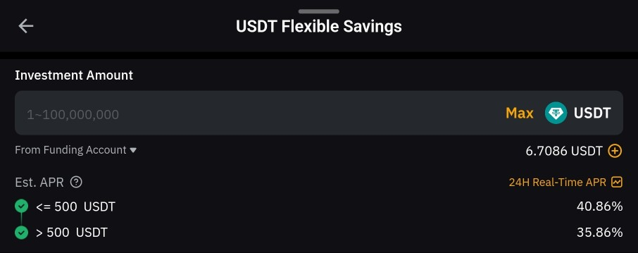 - 바이낸스: 메뉴 > Earn > USDT > Simple Earn